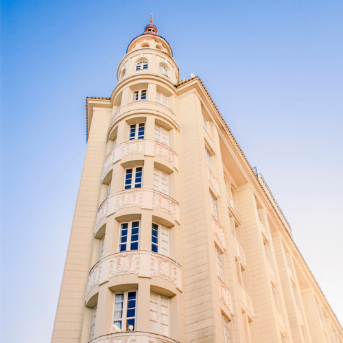 Construído em estilo art déco em 1934, inspirado no Flatiron Building de Nova Iorque, o prédio monumental tem fachada composta por 230 adornos externos originais e 640 janelas de madeira maciça. Toda fachada, tombada pelo Instituto do Patrimônio Histórico e Artístico Nacional (Iphan), adornos e janelas foram restaurados, preservando sua autenticidade e originalidade do imóvel.